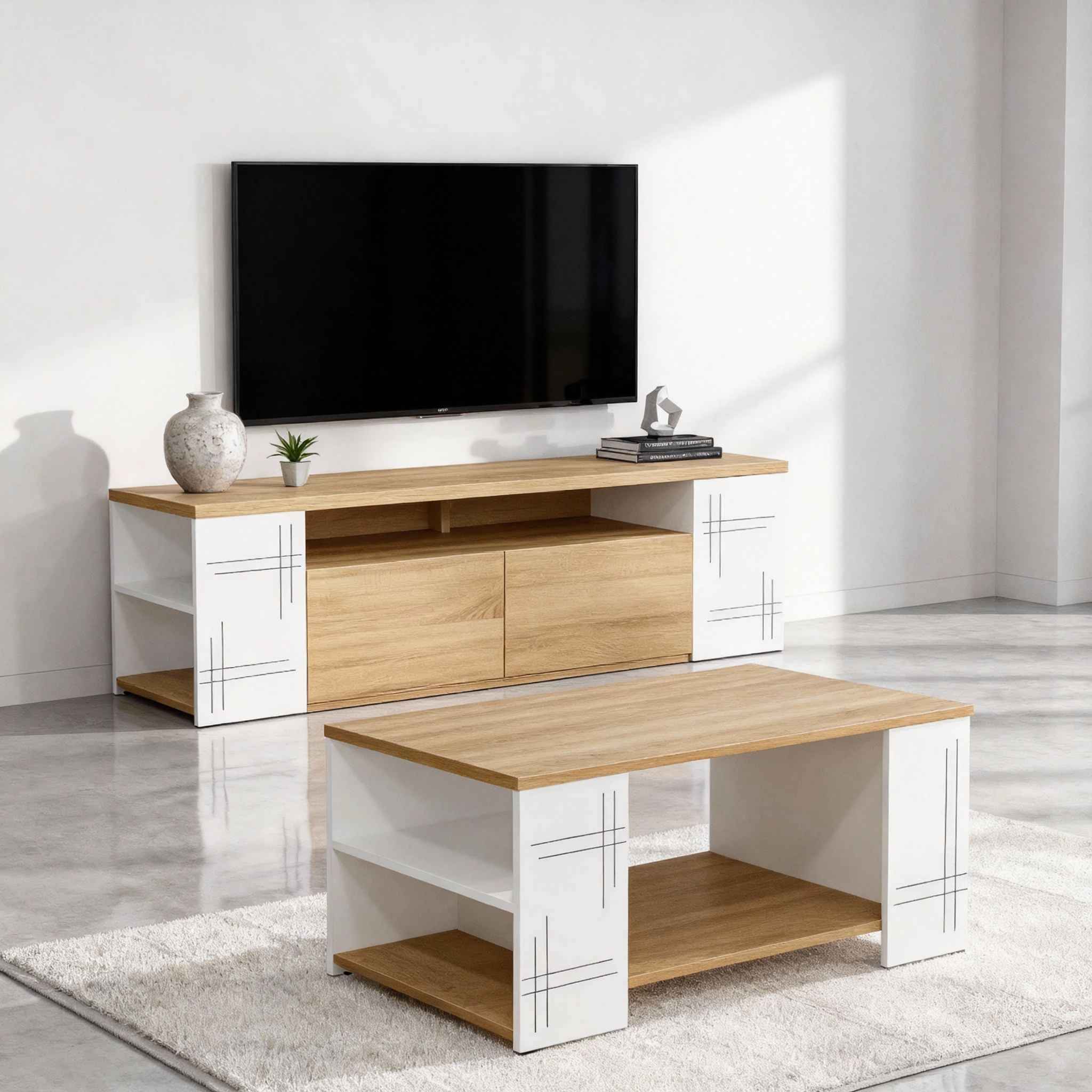 ENSEMBLE LEA ( MEUBLE TV + TABLE BASSE) SONAMA / BLANC