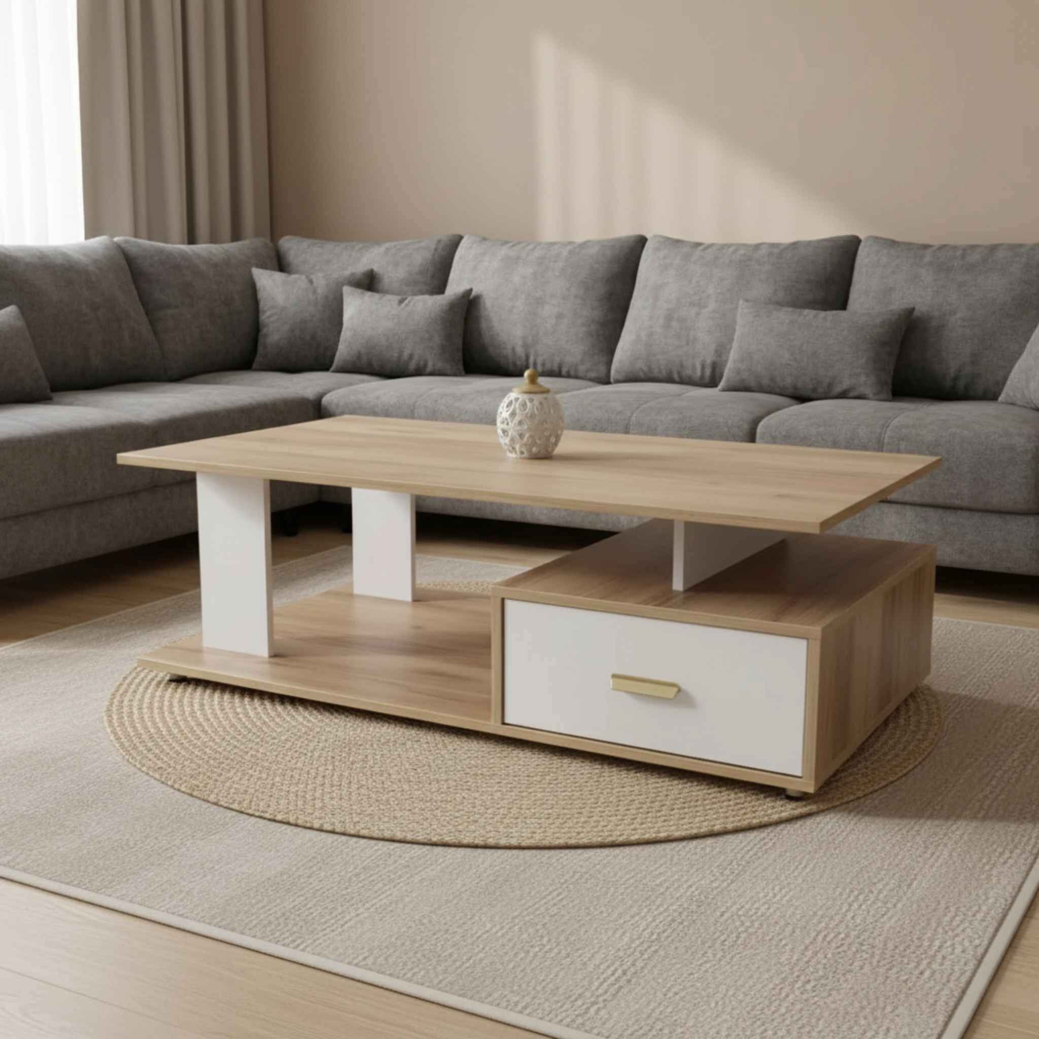 TABLE BASSE COSY AVEC 2 TIROIRS LIFKAS/BLANC